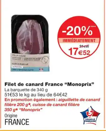 Actuellement en offre chez Monoprix : MONOPRIX Filet de canard France ✅ Valable du 20-01 au 1-02.