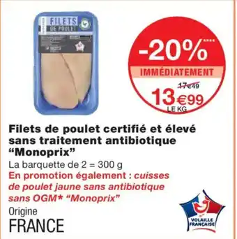 MONOPRIX Filets de poulet certifié et élevé sans traitement antibiotique offres et promotions en ligne chez Monoprix