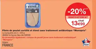 Y a-t-il une promotion sur MONOPRIX Filets de poulet certifié et élevé sans traitement antibiotique la semaine prochaine chez Monoprix ?
