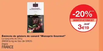 MONOPRIX GOURMET Émincés de gésiers de canard offres et promotions en ligne chez Monoprix