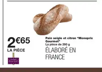 Actuellement en offre chez Monoprix : MONOPRIX GOURMET Pain seigle et citron ✅ Valable du 16-12 au 31-12.
