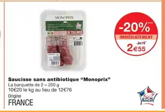 Offre MONOPRIX Saucisse sans antibiotique chez Monoprix
