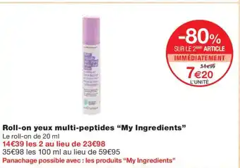 Actuellement en offre chez Monoprix : MY INGREDIENTS Roll-on yeux multi-peptides ✅ Valable du 17-02 au 1-03.