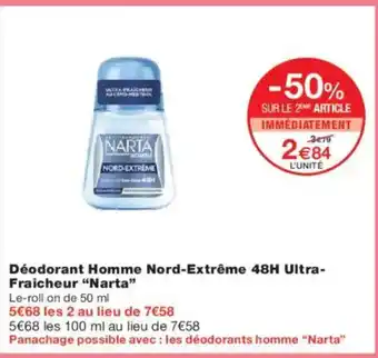 Actuellement en offre chez Monoprix : NARTA Déodorant Homme Nord-Extrême 48H Ultra- Fraicheur ✅ Valable du 1-01 au 18-01.