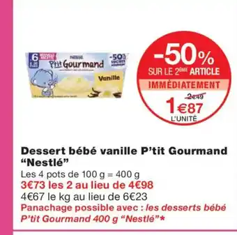 NESTLÉ Dessert bébé vanille P'tit Gourmand : offres et promos Monoprix à découvrir