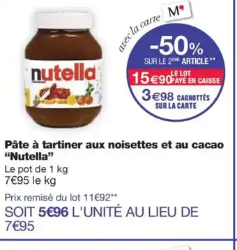 Offre NUTELLA Pâte à tartiner aux noisettes et au cacao chez Monoprix