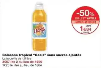 Actuellement en offre chez Monoprix : Oasis - bolssons tropical oasis sans sucres ajoutés ✅ Valable du 20-01 au 1-02.