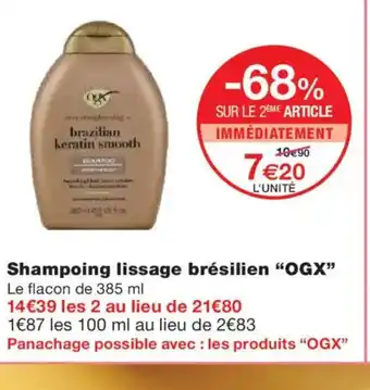 Actuellement en offre chez Monoprix : OGX Shampoing lissage brésilien ✅ Valable du 16-12 au 31-12.