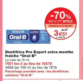 Offre ORAL-B Dentifrice Pro Expert extra menthe fraîche chez Monoprix
