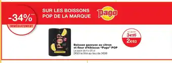 PAGO Boisson gazeuse au citron et fleur d'hibiscus offres et promotions en ligne chez Monoprix