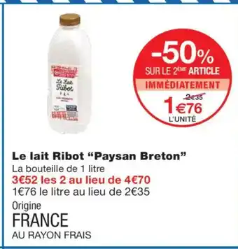 Actuellement en offre chez Monoprix : PAYSAN BRETON Le lait Ribot ✅ Valable du 8-04 au 19-04.