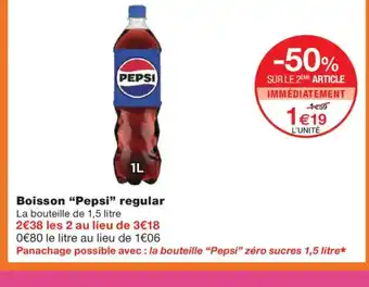 Quand PEPSI Boisson regular sera-t-elle en promotion ? Ou encore : "Est-ce que PEPSI Boisson regular sera en promotion la semaine prochaine ?" C’est une question fréquente. Beaucoup de consommateurs établissent leur liste de courses à l’avance. Pour cette raison, nous mettons en ligne les informations sur les promos à venir dès qu’elles sont connues. Cela vous permet de planifier vos achats et de faire de bonnes affaires. Consultez régulièrement notre site pour savoir si une nouvelle promo sur PEPSI Boisson regular arrive bientôt chez Monoprix.Questions fréquemment posées au sujet de PEPSI Boisson regular
