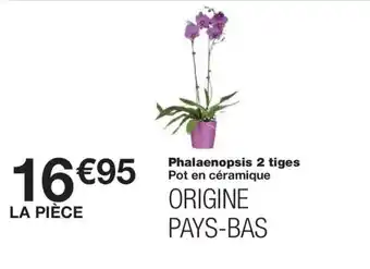 L'offre est disponible dans plusieurs magasins, vérifiez tous les produits pour obtenir le Phalaenopsis 2 tiges le moins cher. Si vous souhaitez savoir si l'article est en vente avec une plus grosse remise dans un autre magasin, consultez la catégorie 'Supermarché'. Ces offres pourraient aussi vous intéresser : Orchidée Phalaenopsis 2 tiges, Phalaenopsis 3 tiges pot & ORCHIDÉE PHALAENOPSIS 2 TIGES.