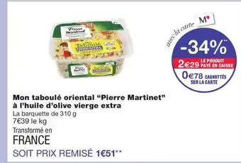 Offre PIERRE MARTINET Mon taboulé oriental à l'huile d'olive vierge extra chez Monoprix