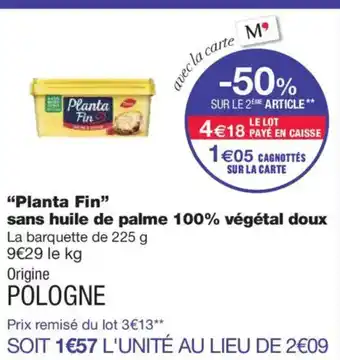 Offre PLANTA FIN sans huile de palme 100% végétal doux chez Monoprix