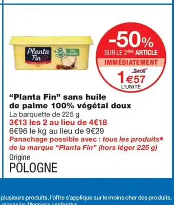 PLANTA FIN sans huile de palme 100% végétal doux offres et promotions en ligne chez Monoprix