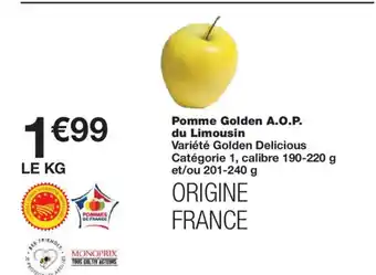 Pomme Golden A.O.P. du Limousin offres et promotions en ligne chez Monoprix