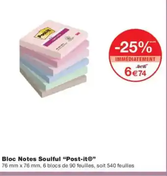 Offre POST-IT Bloc Notes Soulful chez Monoprix
