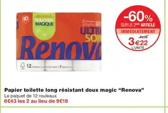Offre RENOVA Papier toilette long résistant doux magic chez Monoprix