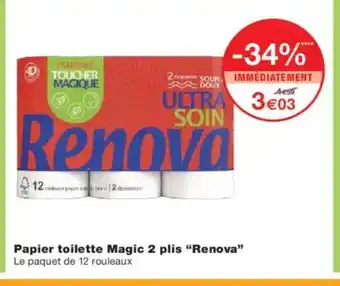 Actuellement en offre chez Monoprix : RENOVA Papier toilette Magic 2 plis ✅ Valable du 1-01 au 18-01.