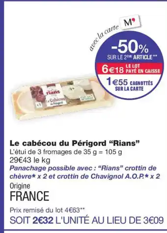 Actuellement en offre chez Monoprix : RIANS Le cabécou du Périgord ✅ Valable du 3-02 au 15-02.