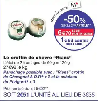 RIANS Le crottin de chèvre offres et promotions en ligne chez Monoprix