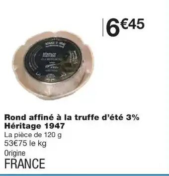Actuellement en offre chez Monoprix : Rond affiné à la truffe d'été 3% Héritage 1947 ✅ Valable du 16-12 au 31-12.