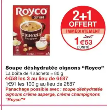Actuellement en offre chez Monoprix : ROYCO Soupe déshydratée oignons ✅ Valable du 20-01 au 1-02.
