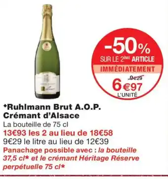 Ruhlmann Brut A.O.P. Crémant d'Alsace : offres et promos Monoprix à découvrir