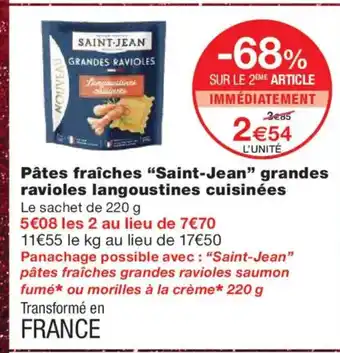 Offre SAINT-JEAN Pâtes fraîches grandes ravioles langoustines cuisinées chez Monoprix