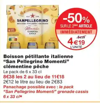 SAN PELLEGRINO MOMENTI Boisson pétillante clémentine pêche offres et promotions en ligne chez Monoprix