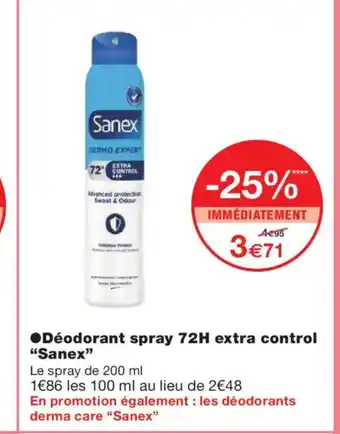 Offre SANEX Déodorant spray 72H extra control chez Monoprix
