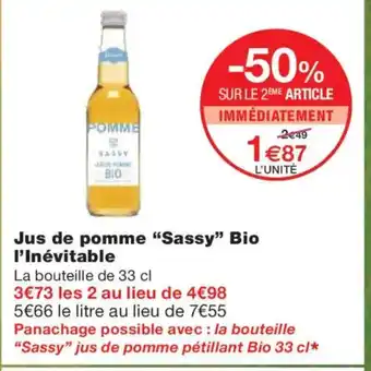Actuellement en offre chez Monoprix : SASSY Jus de pomme Bio I'Inévitable ✅ Valable du 20-01 au 1-02.