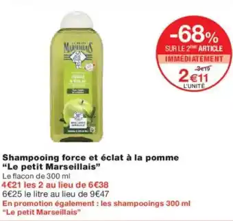 Actuellement en offre chez Monoprix : Shampooing force et éclat à la pomme le petit marseillais ✅ Valable du 3-03 au 22-03.