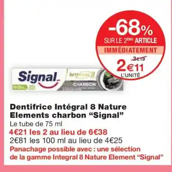 Actuellement en offre chez Monoprix : SIGNAL Dentifrice Intégral 8 Nature Elements charbon ✅ Valable du 20-01 au 1-02.