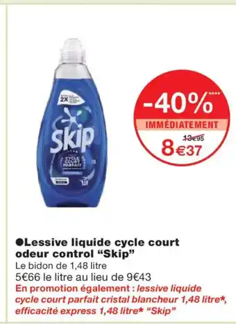 Offre SKIP Lessive liquide cycle court odeur control chez Monoprix