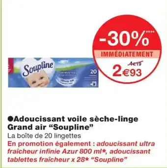 Actuellement en offre chez Monoprix : SOUPLINE Adoucissant voile sèche-linge Grand air ✅ Valable du 3-02 au 15-02.