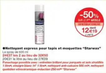Actuellement en offre chez Monoprix : Nettoyant express pour tapis et moquettes starwax ✅ Valable du 20-04 au 3-05.