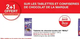 Tablette de chocolat tendre lait milka 200 g