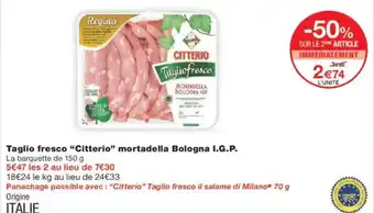 Actuellement en offre chez Monoprix : Taglio fresco citterio mortadella bologna i.g.p. ✅ Valable du 3-03 au 22-03.