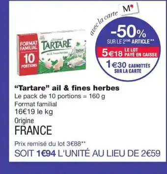 TARTARE ail & fines herbes offres et promotions en ligne chez Monoprix