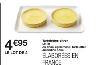 L'offre est disponible dans plusieurs magasins, vérifiez tous les produits pour obtenir le Tartelettes citron le moins cher. Si vous souhaitez savoir si l'article est en vente avec une plus grosse remise dans un autre magasin, consultez la catégorie 'Supermarché'. Ces offres pourraient aussi vous intéresser : Tartelettes citron, 6 Mini tartelettes au citron meringuées & Mini-tartelettes.