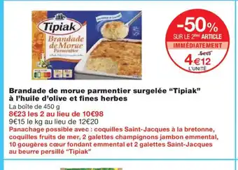 Offre TIPIAK Brandade de morue parmentier surgelée à l'huile d'olive et fines herbes chez Monoprix