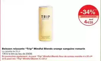 Actuellement en offre chez Monoprix : Trip - boisson relaxante mindful blends orange sanguine romarin ✅ Valable du 1-01 au 18-01.