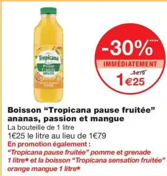 Actuellement en offre chez Monoprix : TROPICANA Boisson pause fruitée" ananas, passion et mangue ✅ Valable du 16-12 au 31-12.