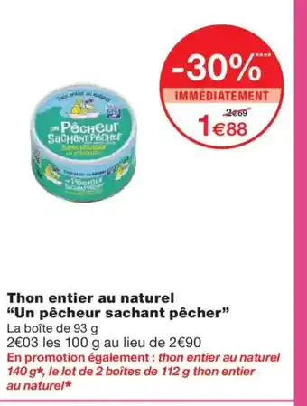 Offre UN PÊCHEUR SACHANT PÊCHER Thon entier au naturel chez Monoprix