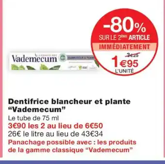 Actuellement en offre chez Monoprix : VADEMECUM Dentifrice blancheur et plante ✅ Valable du 5-05 au 17-05.