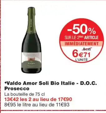 Actuellement en offre chez Monoprix : Valdo Amor Soli Bio Italie - D.O.C. Prosecco ✅ Valable du 16-12 au 31-12.