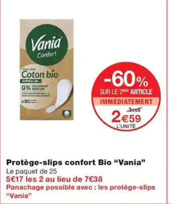 Actuellement en offre chez Monoprix : VANIA Protège-slips confort Bio ✅ Valable du 16-12 au 31-12.