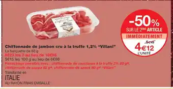 Actuellement en offre chez Monoprix : VILLANI Chiffonnade de jambon cru à la truffe 1,2% ✅ Valable du 16-12 au 31-12.